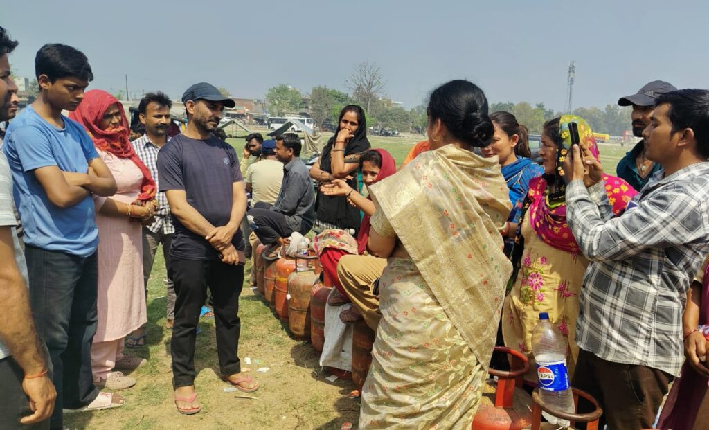 कि घरेलू गैस सिलेंडर से किसी को कोई परेशानी नहीं आने देंगे, उन्होंने जनता से अपील की कि वह प्रशासन को अपना सहयोग प्रदान करें, इस दौरान शर्मा ने मोदी मैदान ट्रांजिट कैंप सहित अन्य स्थानों पर लाइन में लगे लोगों से मुलाकात की और वहां मौजूद लोगों विशेष कर महिलाओं को पानी की बोतलें भी वितरित की, जिससे लाइन में खड़ी महिलाएं और अन्य लोगों को पानी की परेशानी से बचाया जा सके,इस अवसर पर श्रीमती शर्मा ने इंडेन गैस और भारत गैस के अधिकारियों और कर्मचारियों से निवेदन किया कि वह लोगों को सामान्य रूप से गैस सिलेंडर उपलब्ध कराने में अपना सहयोग प्रदान करें,उन्होंने कहा कि अनावश्यक रूप से यदि कहीं कोई परेशानी दिखाई दी या जनता में रोष पैदा हुआ तो वह जनता के समर्थन में हर आवश्यक कदम उठाएंगी l