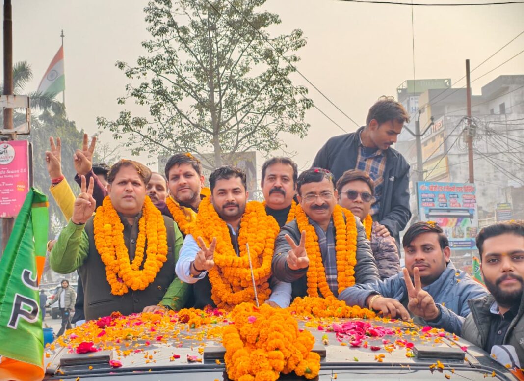 न्यूज प्रिन्ट,रुद्रपुर। भारतीय जनता युवा मोर्चा (भाजयुमो) के नव नियुक्त जिलाध्यक्ष विपिन सिंह गहलोत उर्फ बिट्टू चौहान का बुधवार को रुद्रपुर में ऐतिहासिक और भव्य स्वागत किया गया। पार्टी कार्यकर्ताओं ने पुष्पवर्षा, नारेबाजी और ढोल-नगाड़ों के साथ उनका जोरदार अभिनंदन किया। स्वागत रैली गल्ला मंडी खाटूश्याम से प्रारंभ होकर मुख्य बाजार होते हुए भाजपा कार्यालय तक पहुंची।