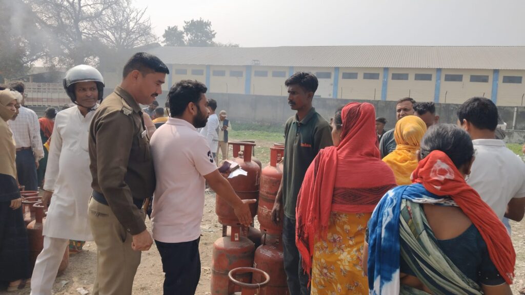 पुलिस की पहरेदारी में बांटे गए गैस सिलेंड