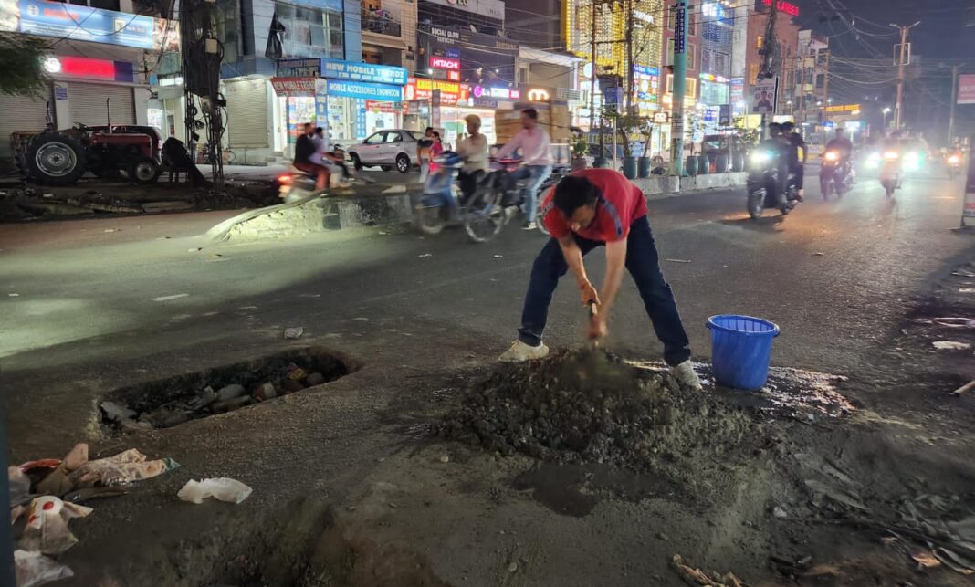 न्यूज़ प्रिंट रूद्रपुर. की सबसे व्यस्त सड़क मानी जाने वाली काशीपुर बायपास रोड पर विगत पांच दिनों से मुसीबत का सबब बन गए दो विशाल गड्ढों को विगत रात्रि समाजसेवी सुशील गाबा ने खुद अपने हाथों से पाट कर हजारों लोगों को बड़ी राहत प्रदान की।