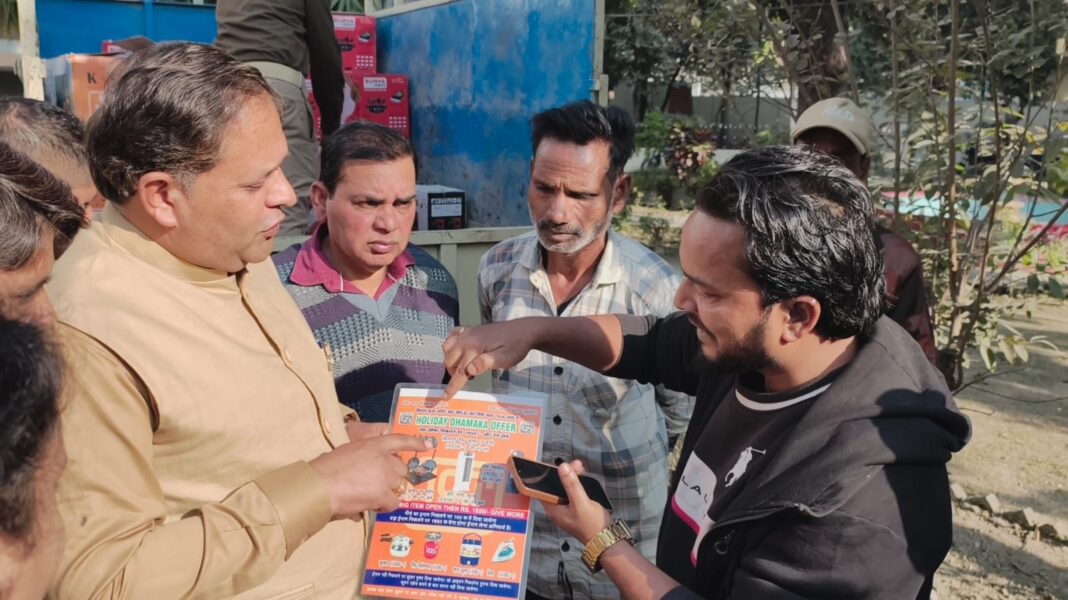 न्यूज प्रिन्ट,रूद्रपुर। गंगापुर रोड पर लॉटरी का लालच देकर लोगों को लूट रहे एक कारोबाीर को महापौर ने कड़ा सबक सिखाते हुए उसका सामान और वाहन जब्त करवा दिया। महापौर ने शहर में इसी तरह अन्य स्थानों पर भी कारोबार कर रहे अन्य लोगों के खिलाफ भी नगर निगम अधिकारियों को अभियान चलाकर सख्त कार्रवाई करने के निर्देश दिये।