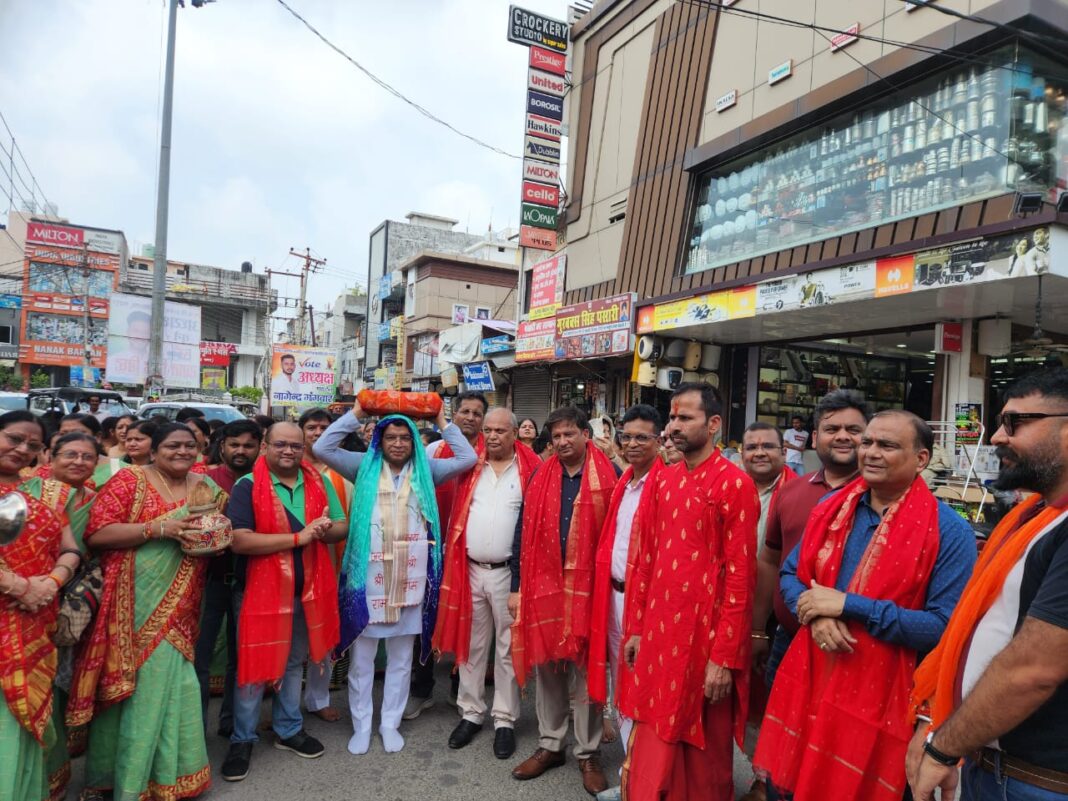 राधा रानी भागवत कथा प्रारम्भ होने से पूर्व रुद्रपुर मुख्य बाजार में निकली कलश यात्रा, शामिल हुऐ विधायक शिव अरोरा