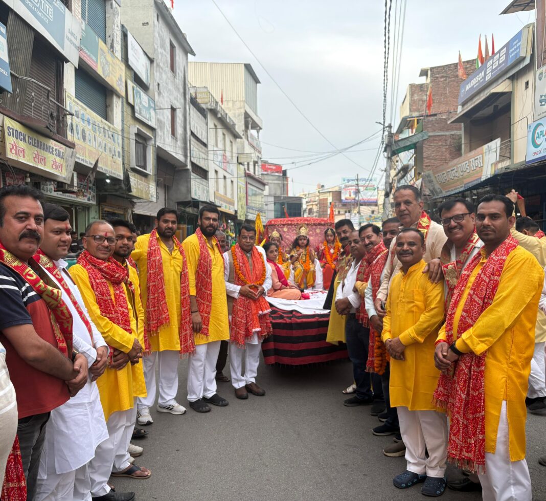 न्यूज प्रिन्ट रुद्रपुर । रुद्रपुर। पंचमुखी हनुमान मंदिर समिति गल्ला मंडी के तत्वाधान मे आयोजित हनुमान जन्मोत्सव की पूर्व संध्या मुख्य बाजार में निकाली शोभायात्रा जो पंचमुखी हनुमान मंदिर गल्ला मंडी पर जाकर संपन्न हुई।वही शोभायात्रा में क्षेत्र विधायक शिव अरोड़ा भी शामिल हुए, जहां हनुमान भजन के गुणगान करते हुए पैदल मुख्य बाजार से निकाले जिसमें हनुमान के स्वरूप पर आधारित भाव झांकियां भी आकर्षण का केंद्र रही। वही शोभा यात्रा का जगह-जगह पुष्प वर्षा के साथ स्वागत सत्कार हुआ।