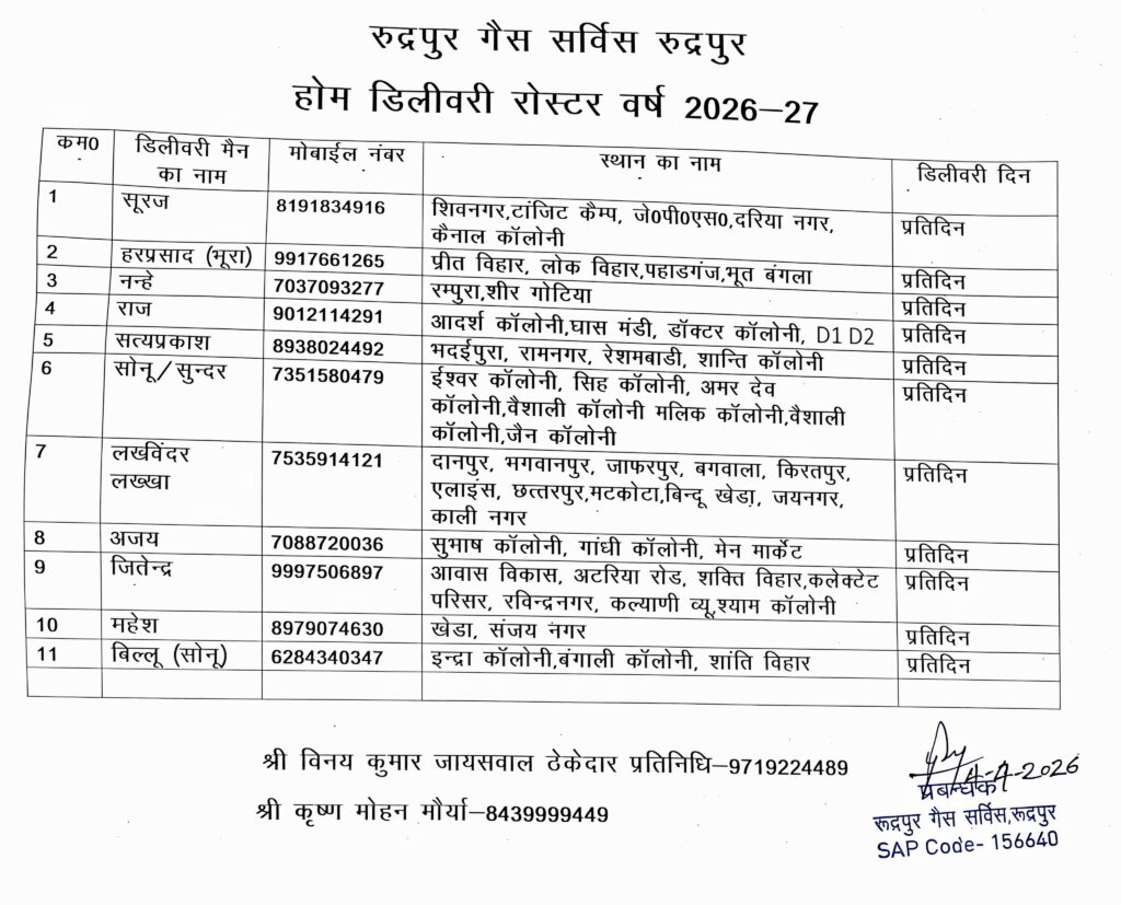 महापौर विकास शर्मा ने जानकारी देते हुए बताया कि गैस वितरण व्यवस्था को सुव्यवस्थित करने के लिए कड़े कदम उठाये गये हैं। उन्होनंे कहा कि ठेकेदार और एजेंसियों को किसी भी दशा में मनमानी नहीं करने दी जायेगी। उन्होंने कहा कि प्रदेश की सरकार अंत्योदय और सुशासन के मंत्र पर कार्य कर रही है। मुख्यमंत्री जी के नेतृत्व में हमारी सरकार का स्पष्ट लक्ष्य है कि आम जनमानस को गैस जैसी जरूरी सुविधा के लिए भटकना न पड़े। रुद्रपुर में गैस वितरण में जो सुधार किए गए हैं, वे सरकार की जन-हित सर्वाेपरि की नीति का ही हिस्सा हैं। हम पारदर्शी और भ्रष्टाचार मुक्त तंत्र विकसित करने के लिए प्रतिबद्ध हैं। इंडेन गैस एजेंसी की नई व्यवस्था से न केवल समय की बचत होगी, बल्कि बिचौलियों के हस्तक्षेप पर भी पूरी तरह लगाम लगेगी।