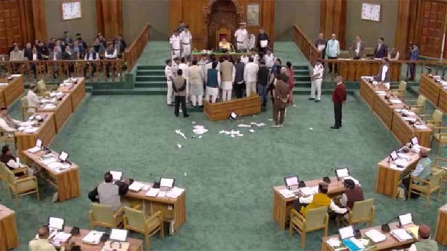 भराड़ीसैंण (गैरसैंण)। उत्तराखंड विधानसभा का मानसून सत्र मंगलवार को विपक्षी हंगामे की भेंट चढ़ गया। सुबह से ही कांग्रेस विधायकों ने कानून-व्यवस्था और कथित वोट चोरी को लेकर सदन में जोरदार विरोध किया। हंगामे के चलते कार्यवाही को कई बार स्थगित करना पड़ा।