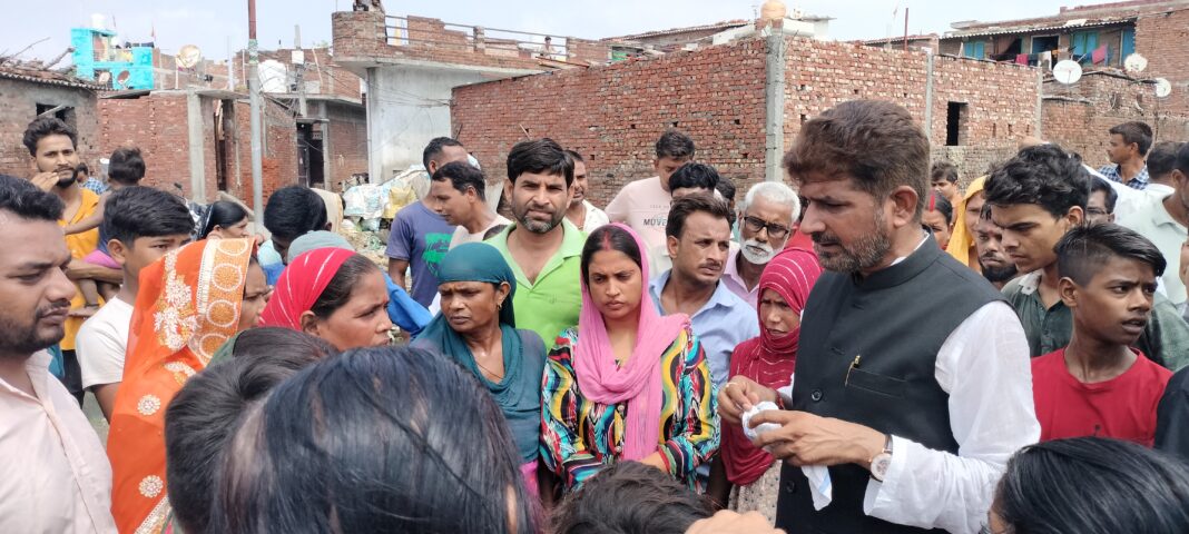 न्यूज़ प्रिंट,रुद्रपुर। जिला प्रशासन एक-एक कर शहर के उन स्थानों को चिन्हित कर रहा है जहां से उन्होंने अतिक्रमण को ध्वस्त करना है। ऐसे में अब लोगों के सर पर फिर उजड़ने की तलवार लटक गई है। अभी भगवानपुर कोलाडिया का मामला शांत भी नहीं हुआ कि आज गंगापुर रोड स्थित गड्ढा कॉलोनी के सैकड़ो लोग सड़कों पर उतर आए कि जब उन्हें नगर निगम से जगह खाली करने का नोटिस मिल गया ,ऐसे में उन लोगों में हड़कंप मचा हुआ है। घटना की जानकारी मिलने पर कांग्रेस महानगर अध्यक्ष सीपी शर्मा भी वहां पहुंच गए और उन्होंने भाजपा सरकार पर जमकर हमला बोला। गड्ढा कॉलोनी में लगभग सैकड़ो परिवार निवास करते हैं उनका कहना है कि तीन-चार दिन पूर्व नगर निगम से उन्हें जगह खाली करने का नोटिस मिला है ।जिसमें कहा गया है कि गड्ढा कॉलोनी से निकल रहे नाले से दोनों तरफ 20-20 मीटर की जगह खाली कर दी जाए अन्यथा एक सप्ताह के बाद प्रशासन की टीम ध्वस्तीकरण की कार्रवाई शुरू कर देगी।