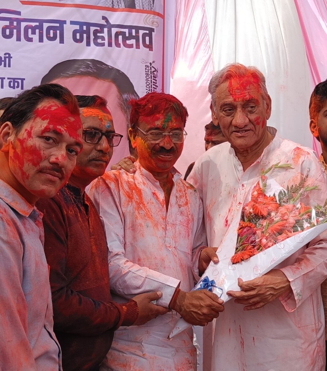 न्यूज प्रिन्ट,सितारगंज। में मंत्री सौरभ बहुगुणा ने समर्थकों संग आवास पर हजारों लोगों के साथ मनाई होली जिला अध्यक्ष कमल जिंदल ने पूर्व मुख्यमंत्री विजय बहुगुणा को पुष्प देकर होली की बधाई दी सितारगंज। कैबिनेट मंत्री सौरभ बहुगुणा के आवास पर सौरभ बहुगुणा विजय बहुगुणा सुमेधा बहुगुणा तथा अपने पुत्र के साथ हजारों लोगों ने एक दूसरे पर गुलाल लगाकर मलाई होली पहाड़ी तथा थारू जनजाति के महिलाओं तथा पुरुषों ने होली के गीतों पर झूमते नजर आए। सारी दुनिया है दीवानी सौरभ भइया आपकी… होली के गीत पर थारू होल्यारों ने खूब डांस किया। अबीर-गुलाल लगाकर एक दूसरे को बधाई दी। पूर्व सीएम विजय बहुगुणा और सुमेधा बहुगुणा ने होल्यारों और क्षेत्रवासियों को होली पर्व की बधाई दी। कैबिनेट मंत्री सौरभ बहुगुणा के आवास पर होली मिलन कार्यक्रम शुरू हुआ। पर्वतीय समाज, थारू समाज समेत विभिन्न संगठनों के महिला व पुरुष होल्यार होली पर्व पर समर्थकों के साथ होली खेलते कैबिनेट मंत्री सौरभ बहुगुणा।