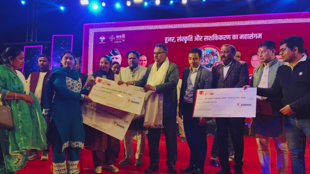 न्यूज प्रिन्ट,रुद्रपुर। रुद्रपुर 18 फरवरी 2026 (सू०वि०) सरस आजीविका मेला (यू.एस. नगर कार्निवाल) के पाँचवें दिवस पर आयोजित जनजातीय सांस्कृतिक संध्या ने मेले में पहुंचे जनसमूह को मनोरंजन, उत्साह और सांस्कृतिक रंगों से सराबोर कर दिया। इससे पूर्व हिमनाद बैण्ड के द्वारा शानदार प्रस्तुति देकर श्रोताओं को खूब नचाया। पंचम दिवस पर कार्यक्रम के मुख्यातिथि जनपद के प्रभारी मंत्री गणेश जोशी ने कार्यक्रम में ग्रामोत्थान रीप परियोजना के अंतर्गत 51 पशु सखियों को मोबाइल फोन वितरित किये। इसी क्रम में ग्रामोत्थान रीप परियोजना के अंतर्गत विकास खण्ड रुद्रपुर के प्रतिभा सी एल एफ बंडिया, रुद्रा सी एल एफ नारायणपुर, आजाद सी एल एफ बरा एवं नारी शक्ति सी एल एफ बिगवाड़ा को 6-6 लाख के अनुदान राशि के चेक वितरित किये। माननीय गणेश जोशी ने कहा कि उत्तराखंड में पुष्कर सिंह धामी के नेतृत्व में राज्य सरकार महिलाओं के सशक्तिकरण को प्राथमिकता देते हुए उन्हें आत्मनिर्भर बनाने की दिशा में निरंतर कार्य कर रही है।