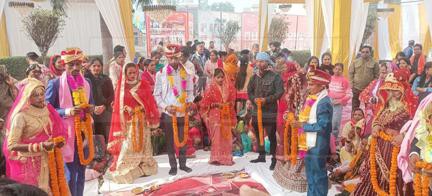न्यूज प्रिन्ट,रुद्रपुर। सामाजिक संस्था जिंदगी जिंदाबाद समिति द्वारा सिटी क्लब में पांचवां सामूहिक विवाह समारोह आयोजित किया गया, जिसमें 17 वर-वधुओं का विवाह संपन्न कराया गया। समारोह में राजनीतिक, धार्मिक और सामाजिक संगठनों के प्रतिनिधियों ने नवदंपतियों को सुखी दांपत्य जीवन का आशीर्वाद दिया।